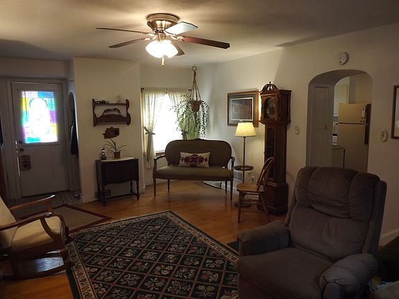 Country living on the edge of town. Large, private lot with beautiful trees. Well maintained. Hardwood floors in living room. A bedroom and bath on each level. 2 stall garage has additional room for storage and/or a workshop. Improvements include: new roof on house and garage (2006), gutters (2007), gas hot water heater (2007), 10x14 shed (2010), 6 new windows (2010) front deck (2015) and bathtub (2015).