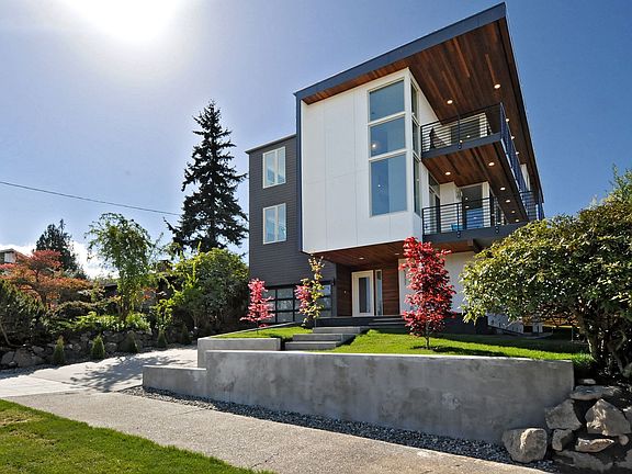 Architectural elements and design highlight panoramic views West over Alki Beach to Puget Sound and Olympic Mountains. Dramatic rooms complemented with light and textures. Dazzle guests as the center of entertainment. Great Room concept with vaulted ceilings, white oak hardwood floors, & dual facing glass rock fireplace. Polar white quartz counters, Spanish Porcenelosa Tile, & Viking appliance package. Floating staircases. Master suite w/ covered deck, and commanding views; yours to treasure.