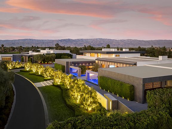 Madison's Unrivaled Trophy Estate. Poised on the most coveted block of Ross Avenue, this monumental estate commands explosive views of pristine mountains and the emerald fairways of the club's signature Tom Fazio course. With an astounding 470 feet of golf course frontage, this property is a world unto itself, sprawling across a rare triple lot, encompassing approximately 2.5 entirely flat acres. Boasting 43,760 square feet built under roof and 35,370 square feet of climate-controlled space, it stands as the largest and most magnificent residence ever constructed in the Madison club widely regarded as the most exclusive and luxurious private club in the California desert. Originally conceived in 2020 as the personal primary residence of Madison's premier residential developer, no expense was spared in its creation. The estate features two breathtaking primary suites, each a sanctuary of approximately 5,000 square feet. The ground-floor suite offers immediate access to the lush grounds, while the secluded Penthouse Suite occupies the entire second floor, offering the ultimate private retreat. The home's fresh and stylish design is a seamless fusion of the finest materials, state-of-the-art technology, and masterful construction, serviced by five full kitchens. The design was driven by a single motto: "There is only one ride, and it better be fun." This philosophy is brought to life through an astonishing collection of amenities. Challenge guests at the area's only indoor pickleball court or on the professional outdoor court. Entertain in your private club affectionately known as "Da Club" complete with a full bar, DJ booth, and golf simulator. Rejuvenate in the world-class gym or at one of four shimmering glass-pebble pools. As evening falls, the estate transforms, with 32 distinct fire features (19 masonry fireplaces) casting a magical glow. A massive sound system and 40 televisions ensure the perfect ambiance is always just a touch away. For the automotive connoisseur, 13 garage spaces and 10 carport spaces await your beloved rides. After a day of excitement, your guests can retire to the spectacular guest house, a private haven with its own zero-edge pool. This estate is flawlessly equipped to host up to 26 guests, making it the ultimate destination for festival weekends, unforgettable holidays, or any celebration of life's most memorable moments. There is only one ride. This is it.