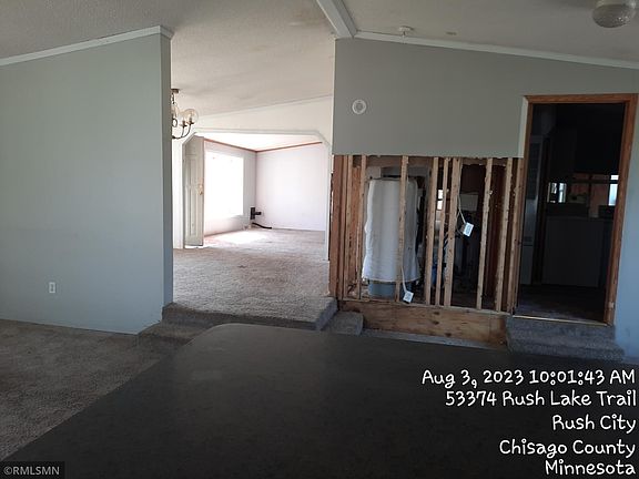 Looking for over 5 acres, close to town and only an hour north of the Twin Cities? This manufactured home is in need of repairs but is worth it! Close to Rush Lake public boat landings, Chisago County Park and a golf course and not to mention that it has a large 25x56 garage that is insulated, has electric and a hoist for large car parts. Being sold AS-IS. Buyer and/or buyer's agent to confirm all measurements. Buyer to confirm that septic is compliant before closing at buyer's expense.