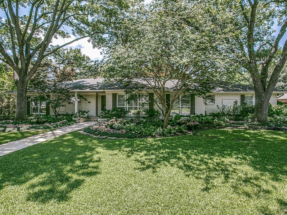 Lovely remodeled home located in North Dallas off of Inwood Road, in the Lamplighter and Hockaday Schools vicinity. Professionally landscaped front and backyard with large trees. Nice size outdoor patio with patio awning replaced two years ago. The awning shades the family room nicely. Garage was air-conditioned for their dogs comfort. The AC in the garage also helps keep the kitchen cool when it is over 100 degrees. Updated kitchen is an eat-in kitchen with built-in desk, Sycamore kitchen cabinets, double stainless steel sinks, stainless steel Asko dishwasher, Thermador gas cooktop/range oven and Dacor warming drawer. Island kitchen is open to the family room with stone fireplace. Wall of windows looks out over beautiful treed backyard with flagstone walkway. Living room/dining room combination with plantation shutters. Tile flooring in kitchen, family room and heavy traffic areas. Master bedroom suite with plantation shutters. The 13 x 16 master bathroom was totally redone with large frameless shower door, separate jetted tub, and walk-in closet. Full slab granite countertops with Sycamore wood cabinetry and built-ins. Spacious with beautiful millwork. Bedroom #2 with large window overlooking backyard, two closets and shares a bathroom with bedroom #3, also with two closets. Split 4th bedroom with full bath, granite countertops, and two closets. Utility room with upper cabinetry the length of the room. Electric panel replaced in January 2017. Lutron light system.