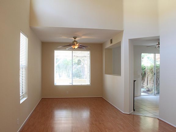 Situated on the view side of a quiet cul-de-sac in the well-manicured Ventana neighborhood is this lovely 3BD 2.5 BA home with only one neighbor attached. This move-in ready home features an open floor plan, high ceilings w/ lots of natural light, recessed lighting, ceiling fans & Decorator paint throughout, and 2-car attached garage w/ direct access. Updated kitchen boasts oak wood cabinetry, granite counters, stainless steel sink w/ newer faucet fixtures, built-in microwave, breakfast counter/bar, and opens to the family room w/ cozy fireplace. The master bedroom offers neutral carpet, ceiling fan, walk-in closet, and master bathroom w/ convenient step-in shower & dual vanity sinks. Relax in the serene backyard complete with covered patio, grassy area, mountain views & mature trees for added privacy. This lovely home is conveniently located with close proximity to the sparkling community pool & spa. HOA also includes exterior maintenance, landscape, picnic area & RV storage area. (Floor size: 1573 sqft/lot 3650 sqft)