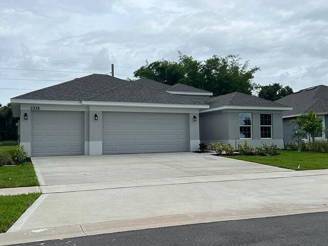 Closing costs paid with approved lender and new home warranty. Only $1,000 deposit for limited time only. New home features 2,000 Living sq. ft with 4 bedrooms, 2 full bathroom, 3 CAR Garage, 10' Ceilings and a large covered lanai. Close to I-95 and Fl. Turnpike, shops and restaurants, fishing, golf, and beaches! Community pool, fitness room, playground, picnic area, volleyball, tennis and pickleball courts. Sample photos used.