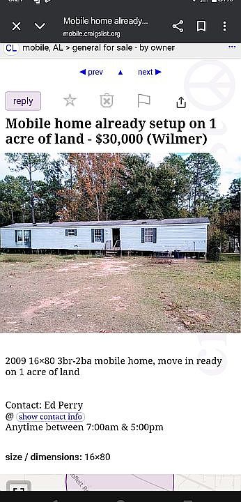 It's a 2009 16×80, 3br 2ba sitting on a little more then 1 acre land, septic tank was pumped out in the last few years