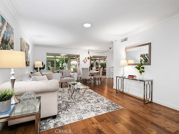 Welcome home to this charming Las Flores model, nestled in the desirable 55+ community of Laguna Woods Village. This inviting 2-bedroom, 2-bathroom residence boasts an array of thoughtful features and enhancements designed for comfortable and enjoyable living. End unit cottage-style home with no neighbors above or below. Lovely park like greenbelt and HOA maintained lawn in front and side of home. As you enter, you'll be greeted by a seamless flow between the attached garage, which offers direct access into the living room, and the rest of the home. Home features updated kitchen with stainless finish appliances, modern backsplash, remodeled bathrooms with designer selected tile surrounds in the showers. The additional glass enclosed patio room runs the width of the interior living space and is not included in the square footage. It is a large versatile space that can serve as a den, craft room, music room, or exercise room, provides endless possibilities to suit your lifestyle. The oversized one car garage is a true asset, featuring a washer and dryer, and space for storage. There is also additional driveway parking and guest parking available on the Cul de sac.
