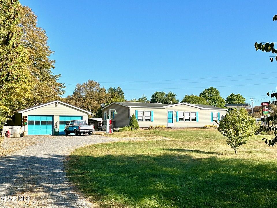 Move in Ready, 3 bedroom 2 bath doublewide home on .81 acre!! This home has an open living room, accented with a wood burning stone fireplace. The galley kitchen with its beautiful honey oak cabinetry has lots of storage, a coffer bar, large spice rack above the stove. The open dining and living space is great for placing lots of furniture. The master suite has a walk in closet and a separate stand up shower and a garden tub for enjoying those relaxing baths. The basement offers more storage. The 2 car garage is detached with a cement floor and electric. Call for your tour today!