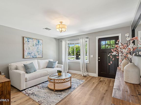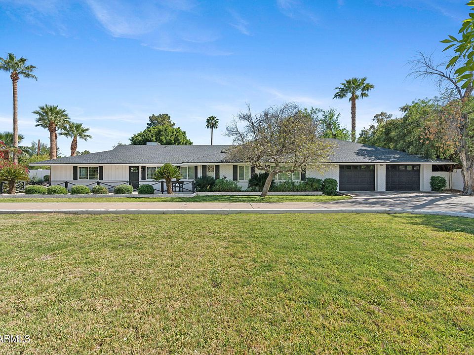 Situated on nearly an acre in sought-after Grove Park Estates, this updated Arcadia ranch offers timeless style, modern functionality, and stunning Camelback Mountain views. The property offers a combined 4,139 square foot main house and a large 891 square foot guest house. The 3-bed, 4-bath main home features a thoughtful floor plan, spacious living areas, and high-end designer finishes throughout. Accordion-style glass doors create seamless indoor-outdoor living, opening to a large covered patio and a resort-style backyard.