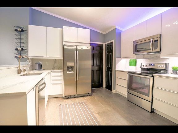 The kitchen is designed for style and function stainless-steel appliances, quartz counters, sleek modern cabinetry and accent lighting.