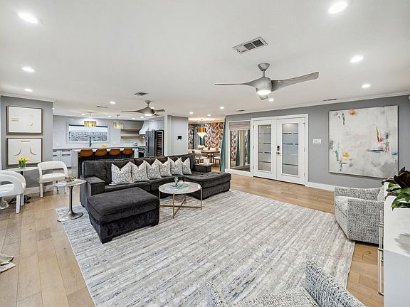 Stunning Mid-Century Modern home located in the highly desirable Meyerland neighborhood. NEVER FLOODED! There is an incredible sparkling pool (Replastered in 2025) plus new turf in the back green space areas. The home has been remodeled and updated with an open-concept floor plan that is perfect for casual living or formal entertaining. Huge family room with views of the patio & pool from every angle. Stunning Island Kitchen with brekfast bar seating, quartzite counters, floating shelves, custom cabinetry, high-end appliances plus tons of storage. The elegant formal dining room with papered walls & drapes. Incredible Primary Suite with Luxurious Primary Bath. Private study for the at-home pro. Spacious Secondary Bedrooms and Designer finishes in the Secondary Bathrooms. Other incredible features: MUD Room, Wet-Bar/Butler's Area to service entra help for the Kitchen or to Service the Pool/Patio Area for Parties. Media Room or Guest Suite in the back of the home. Truly Stunning!