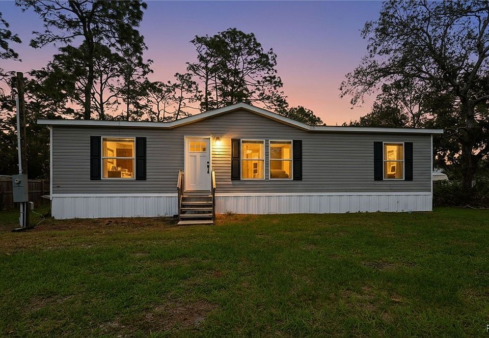 Step inside this stunning 2023 mobile home offering a modern open-concept floor plan. The spacious living room flows seamlessly into a stylish eat-in kitchen featuring an oversized island—perfect for extra seating and entertaining guests. This split floor plan provides privacy, with the primary suite boasting a large walk-in closet and a bathroom complete with dual sinks. Enjoy outdoor living in your private, fenced yard with a 6-foot wood fence offering extra privacy and comfort.
