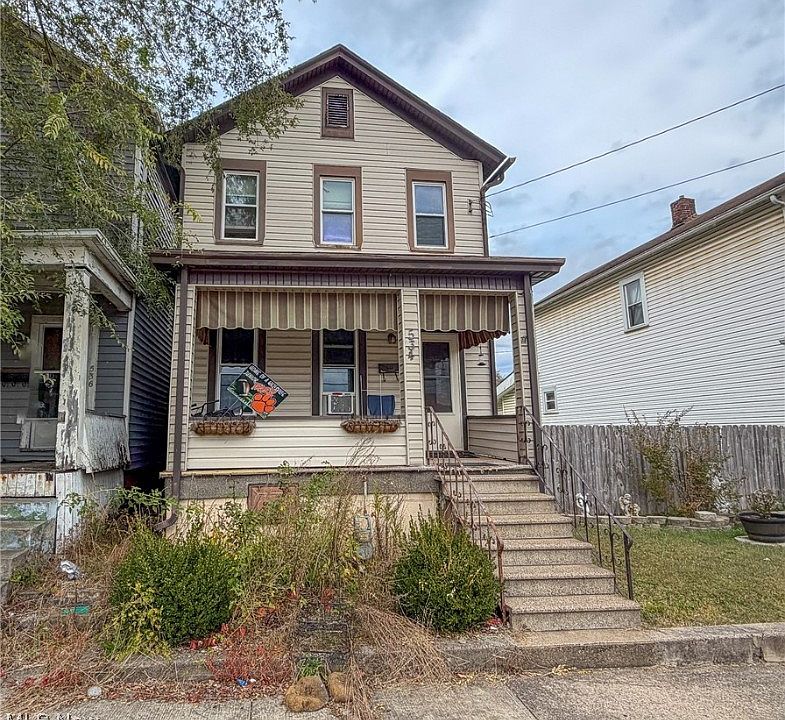 Conveniently located on the tri-state border of Ohio, West Virginia, and Pennsylvania. Two-bedroom one-bathroom home with private parking in the rear. The front of the house has a covered front porch spanning the width of the home. The first floor has a living room, dining room, and kitchen. Upstairs, the home has a full bathroom and two bedrooms. The house sits on a full basement. The laundry is located in the basement. Out back, the home has a small fenced-in yard, a carport, and a back porch.