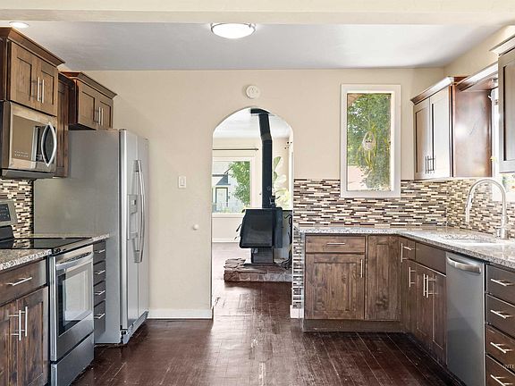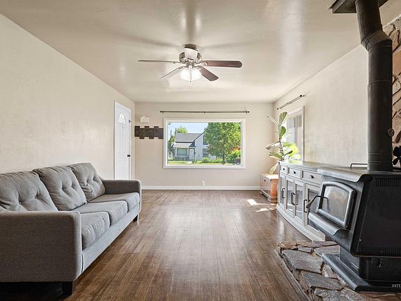 Step into your dream starter home! This beautifully updated 3-bedroom, 2-bathroom gem offers a family room with fireplace, 2 beds and 2 baths on main. Adjacent spacious kitchen with separate eating area. Basement has 3rd bedroom or office space and ample storage. The fully fenced backyard is perfect for pets or play, complete with raised garden beds for your green thumb and a covered porch ideal for summer relaxing or entertaining. Need extra parking? The large cement pad is perfect for your RV, trailer, or additional vehicles. Centrally located just a few blocks from the police station, library, public park, and vibrant downtown life, so you can enjoy the convenience of shopping, dining, and community amenities right at your fingertips. Don't miss this perfect opportunity to make homeownership a reality!