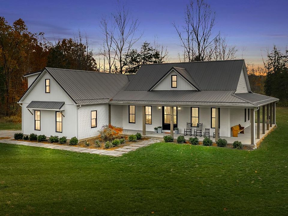 Discover the epitome of refined living in this breathtaking modern farmhouse, perfectly situated on a peaceful cul-de-sac. Built in 2020, this home nestled on 2+ acres, exudes style and meticulous maintenance. From the moment you arrive, you are captivated by the charming wraparound covered porch, inviting you to step into an interior that is nothing short of gorgeous. The home has a split floor plan and is bathed in natural light from large windows that line the entire living area.The main level includes three spacious bedrooms plus a dedicated study/extra living space.The upstairs bonus room offers flexible potential for a fourth bedroom. High-end details abound, including elegant chandeliers and custom built-in bookcases, reflecting the homeowner's impeccable taste. The Primary Suite offers a spacious walk-in closet and bathroom featuring a huge walk-in tile shower. Combining the tranquility of over 2 acres with an absolutely stunning design, this property is a must see! Agent owned
