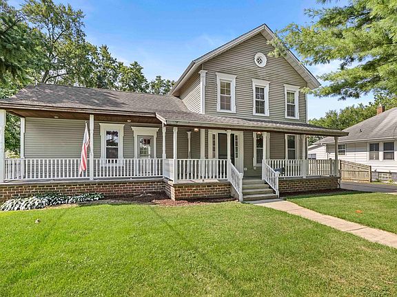 Contractor owned classic 2-story in downtown Crete walking distance to everything. Built before 1900, this wonderful property has vintage touches throughout including custom trim, hardware, doors, staircase, and hardwood floors with a walnut inlay. Eat-in kitchen with maple cabinets, high base trim, skylight, new flooring, walk-in pantry. Roomy main floor includes living room & family room, office/nook, kitchen and enclosed porch. Full bath upstairs features claw-foot tub, skylight, granite tile, pedestal sink, and is shared with the master bedroom. Basement has exterior entry, 150 amp circuit breakers, copper water lines, PVC drain lines, security glass block windows for light and water softener. Nice rear deck overlooks privacy yard. Covered front porch ideal for relaxing and watching the world go by. Note huge workshop/garage measures 36' x 34' has 1/2 bath, 220 electric and separate 100 amp circuit breaker service. Perfect for toy storage, mechanic, man-cave. Literally one block from most amenities including the post office, local restaurants like Aurelio's, Pizza Hut, Smokey Joe's, Wood's Corner, and The Edge coffee shop. Fitness Premier & Curves, NEW convenience store/gas stop, auto repair, BMO Harris bank, & more. If you are looking for the charm of yesteryear combined with the "walk-to" convenience of a downtown location....this is it!