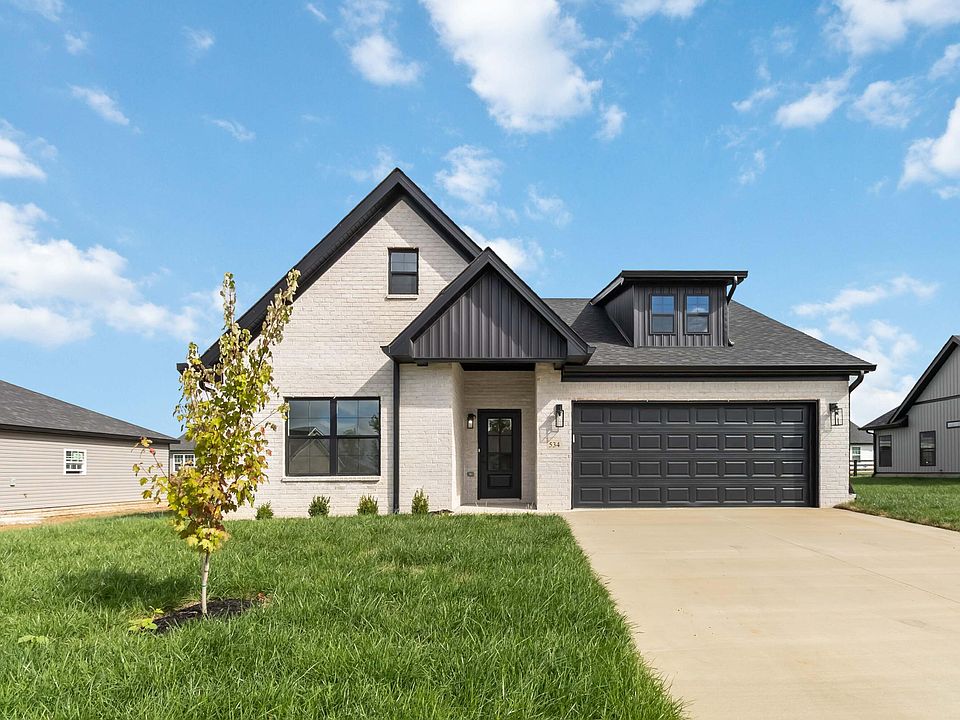Welcoming front porchStainless steel appliancesOpen plan great roomVaulted ceilingsWide plank flooringCustom cabinetryGranite tops