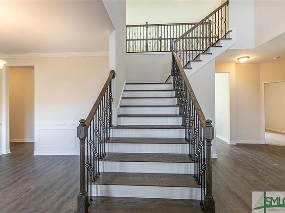 Lamar Smith Homes' beautiful Savannah plan sits on this serene golf course lot in Lost Plantation. This 4 BR 3 BA home begins at the grand foyer staircase with oak handrail, metal balusters, & beautiful wood tread steps. The kitchen, open to the two story great room, has stainless appliances, granite counters, upgraded cabinetry, & a center island. Formal dining room has added crown molding & wainscoting with double chair rail. The bottom level is flanked with luxury vinyl plank flooring in all areas but the bedroom. The upstairs flooring has a tiled master bath, LVP in the other bath, & carpeting in all other areas. The master suite has a large sitting area & a fabulous bath featuring a 6' super shower, a 5' soaker tub, and double vanities. Decorative framed mirrors complete this gorgeous mstr bath. The exterior has landscaped front beds and sodded in the front and sides of the home. Rear is graded & seeded. Blinds in windows. Covered rear patio for serene golf course views!