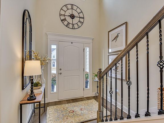 This home includes four bedrooms and three full baths, with a main-level bedroom and bath ideal for guests, multi-generational living, or a home office. Upstairs, the owner's suite offers space for a seating area or nursery, plus a walk-in closet, double quartz vanity, soaking tub, and walk-in shower. Two additional bedrooms share a hall bath, and the loft family room and laundry room add convenience.