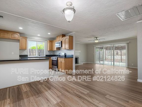 The kitchen boasts granite countertops and abundant cabinet storage, ideal for cooking enthusiasts. Enjoy low-maintenance landscaping in the front and back yards, while the large backyard offers plenty of room to relax, garden, play or entertain. A covered back patio provides a comfortable outdoor area year-round. Additional features include air conditioning and easy access to the 125, 54, and 94 freeways, making commuting simple.