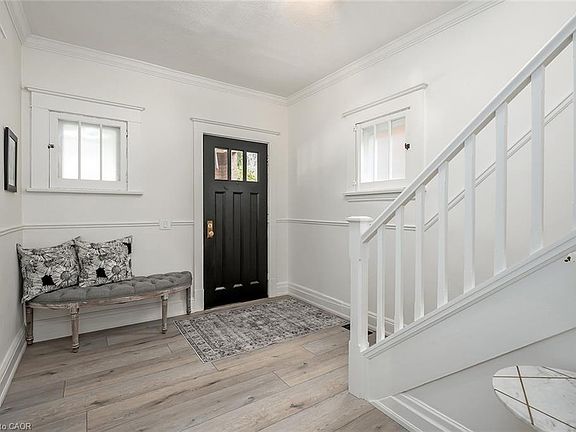 Welcome to this beautifully updated 4-bedroom, 3-bath home offering nearly 2,700 sq. ft. of finished living space in a prime location just steps to Lake Ontario, Spencer Smith Park, The Art Centre, and downtown Burlington’s fantastic shops, and restaurants. The main level features nine-foot ceilings, luxury vinyl flooring, crown moulding, and a charming wood-burning fireplace. The kitchen is a chef’s delight with stainless steel appliances including a gas cooktop and wall oven, quartz countertops, stone backsplash, breakfast bar, and built-in wine and plate racks. A spacious family room with built-in bench seating and storage, plus an updated mudroom with skylight and French doors to the backyard, add to the home’s charm. The primary suite offers a vaulted ceiling, skylight, brick accent wall, built-ins, and a luxurious 3-piece ensuite with heated floors and towel bar, and a gorgeous shower. Three additional bedrooms share a bath with heated flooring and towel wall. The lower level provides a full bath, recreation area, and separate entry for potential in law suite. Enjoy the fully fenced, private, and stunning backyard with a cedar deck, hot tub, firepit area, professional landscaping and irrigation system. A carport with concrete pad, shed, motorcycle garage, and EV charger complete the property. This home is truly move-in ready.