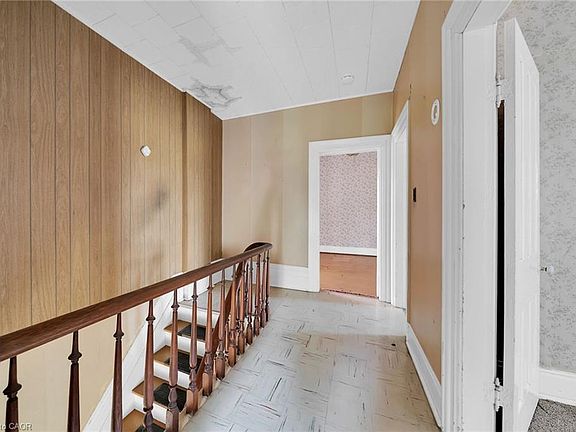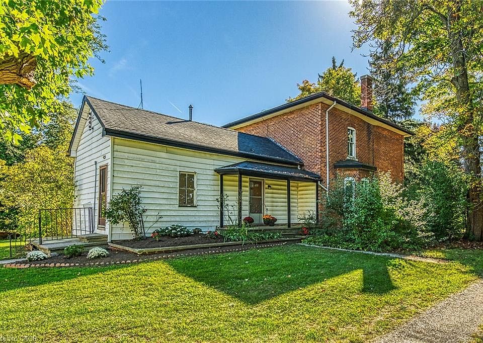 A little bit of heaven waiting for a new family! Recent farm severance, the picture perfect lot is 1.43 acres, down a tree lined country lane well back from the road. The solid two storey brick century home was built in 1915 and shows off the vintage character of the time including original woodwork and trim, super high ceilings and rustic wood floors. Main floor offers a large mud room/laundry room, kitchen, full bath, living room and dining room. Upstairs is three bedrooms - all with closets and another full bathroom. Full cellar style basement under the house houses the mechanicals and is good for storage. A new asphalt roof was added in around 2012-2015. A completely new septic system was installedin 2024 in the front yard. The home is serviced by a water cistern and has very desirable natural gas as the heat source. Forced air furnace was replaced in 2015. Property includes an older detached single car garage. The barns/buildings behind the house are not included with this sale - farmer has a separate driveway to access them, and no livestock will be allowed in them - hay/implement storage only.