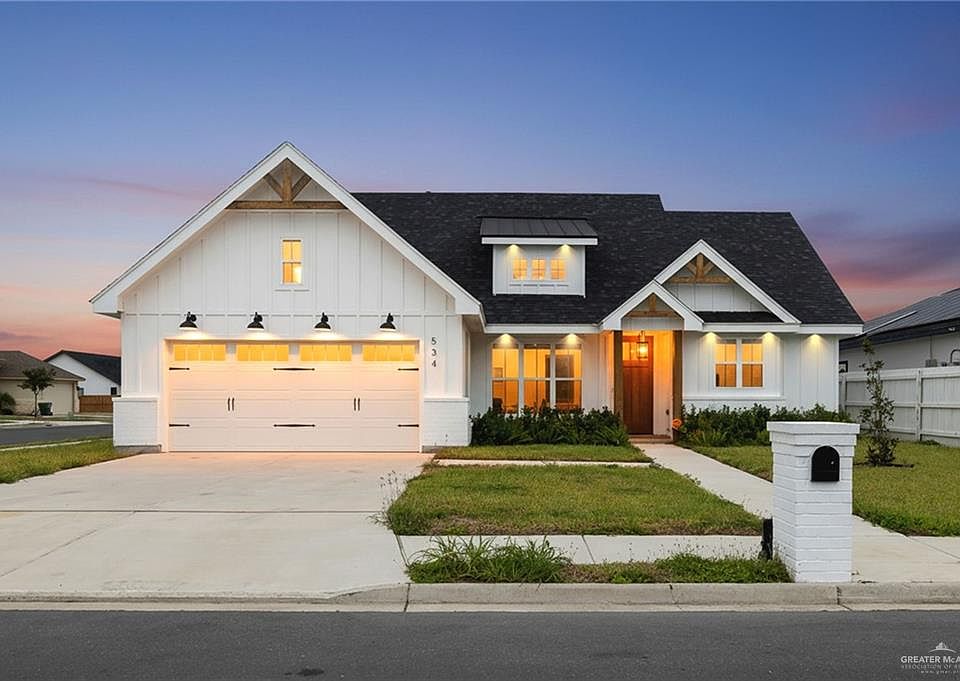 Located just minutes away from the highway! This farmhouse elevation home sits on a premium corner lot, maximizing curb appeal for a very good first impression. This home features 4 bedrooms, with one of the bedrooms being a loft with it's own en-suite. The home features wood-like porcelain tile throughout the entire base level, quartz countertops, tall coffered ceilling's, herringbone patterned backsplash in the kitchen along with a huge island with contrast accent paint. The spacious primary suite's bathroom features two vanity's, a walk-in shower with a sitting area and niches, and a generously spaced walk-in closet with shelving, cubbies, and rods. The spacious guest bedrooms feature porcelain tile and modern hardware. the property also boasts a huge backyard with is perfect for any project such as a pool, pergola, and an outdoor kitchen.