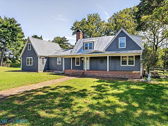 Welcome to Hunton House, a timeless 1797 farmhouse reimagined for modern self-sufficiency, creative work, and peaceful living. Set on 2.47 cleared acres in a water-access community near the Corrotoman River, this property blends rural utility with rare character. Inside, the 2,583 sq ft layout features original wood floors, custom built-ins, and a series of gathering spaces that flow from the living room’s wood-burning fireplace to a modernized kitchen with updated appliances and generous prep space. A flexible bonus room with bar-style finishes opens to an enclosed porch, currently used as a home gym. The first-floor suite offers comfort and privacy, while two upstairs bedrooms invite guests, work, or hobby use. Central HVAC, newer systems, and high-speed Breezeline internet ensure ease without sacrificing charm. Outside, a 30x50 pole barn includes electric, a concrete floor, a 12,000-lb lift, and full second-story storage suitable for trade use, restoration, or storage. The fenced grounds include herb gardens, a chicken coop, and dog kennels for flexible use, while HOA water access includes a shared lot and dock nearby. An additional septic system remains from a prior structure, offering future potential. Whether you're searching for creative space, private acreage, or a well-connected rural retreat, this property offers both purpose and peace.