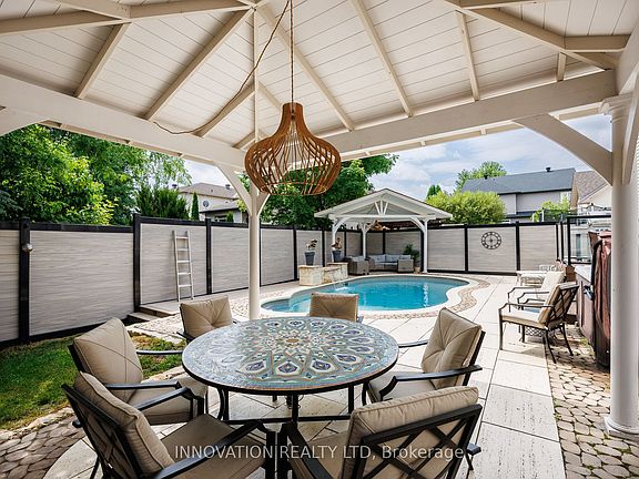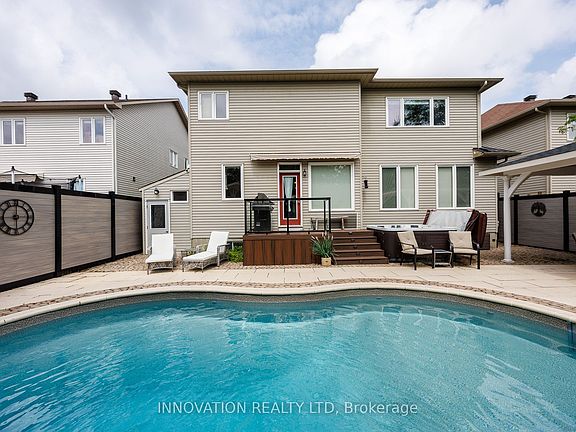 Discover the epitome of luxury living with this exquisite former Holitzner model home, nestled on a premium lot in a fabulous neighborhood. This remarkable property is conveniently located near essential amenities like the 417, Tanger Outlets, Trans Canada Trail, Kanata Centrum, and the Canadian Tire Centre, offering an unparalleled living experience. The true highlight is the incredible backyard oasis designed for both relaxation and entertainment, featuring a saltwater heated pool with a fountain, a hot tub, a changing room, and multiple relaxing seating areas. Inside, the home offers approximately 4,700 square feet thoughtfully designed living space, including 5 bedrooms, 2 ensuite bathrooms, a Jack and Jill bathroom, 3 walk-in closets, a fully finished basement, main floor laundry room, and a main floor office space perfect for those who work from home or run a small business. At the heart of the home is a luxurious chef's kitchen complete with elegant finishes and a walk-in pantry, perfect for preparing family meals or hosting dinner parties. Embrace the opportunity to make this extraordinary property your own and create a lifetime of cherished moments. 24 hour irrevocable on all offers.