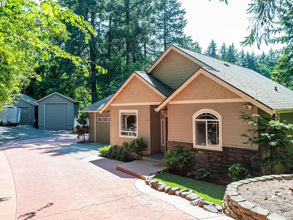 Nestled on a private 1.15 acres, this home is surrounded by a beautiful park like setting. Secluded back yard includes 2 shops with RV garage, seasonal creek, hot tub, outdoor fire pit, mature trees and dreamy setting. This two level peaceful property has potential second living quarters with a master bedroom on the main floor. All indoor spaces have custom finishes and are cozy and full of charm! This is a great buy!!