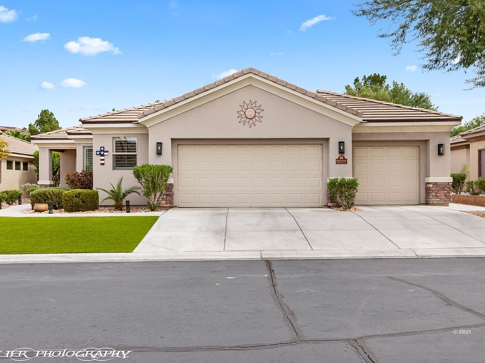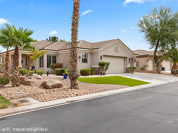 On 7th Fairway of the Falcon Ridge - Beautifully Remodeled. Located on the 7th Fairway of the Falcon Ridge Golf Course in the Gated Community of Mesa Hills. Mesa Hills is a 55+ community known for its well manicured appearance. Since purchasing the home, the sellers have completed a beautiful remodel that includes the following: Repainted interior 2024. NEW Smoked Stainless Steel Appliances 2024. NEW painted kitchen cabinets 2023. NEW tile in entry, living room, kitchen, dining area, bathrooms and laundry room 2022. NEW plantation shutters 2021. NEW 8' glass storm door on front door. NEW carpet 2021. NEW tiled walk-in shower in main bathroom suite 2021. NEW kitchen and bathroom faucets 2024. NEW backsplash in kitchen 2022. NEW astro-turf in front yard 2023. NEW landscape rock and bushes in backyard 2023. NEW solar shade on large living room window and guest bedroom 2023. 3 Car Oversized Garage has epoxy covering on the garage floors. Beautiful east facing covered back patio offers relaxing views of golf course. You will love the welcoming atmosphere created in this backyard - all types of colorful bushes and green grass. Large lot offers room for an addition (3rd bedroom). Washer & Dryer included. Fountain excluded.