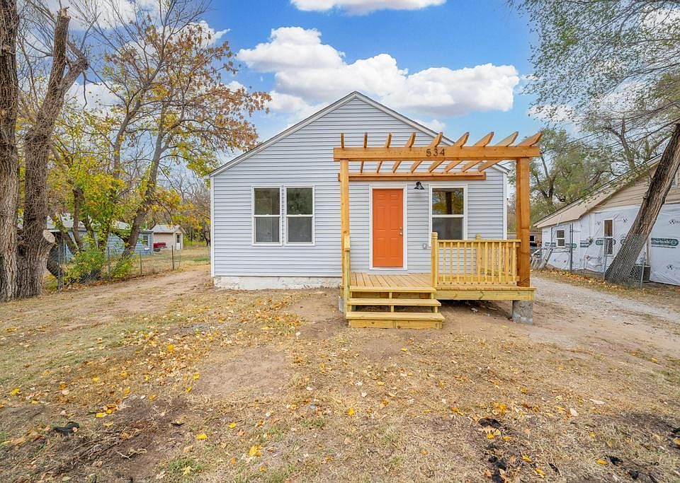 This super cute home in west Wichita has been totally updated all throughout. Featuring high-dollar upgrades including a new roof, new windows, new HVAC system, new electrical work, and upgraded plumbing, you will have brand new systems, features, and finishes inside and out! Pull up front and you'll notice the beautiful front deck with pergola that has space for a seating area. Enter the home to find a living room with big bay windows that let in lots of bright, natural light. Notice the brand new flooring and fresh, neutral paint all throughout. Through the archway, the spacious kitchen features subway tile backsplash, sleek counters, tons of cabinet space, and stainless appliances that are all included. The adjoining dining room is open to the kitchen, making this a great layout for entertaining. There are two bright bedrooms and a fully-remodeled bathroom that complete the main floor. Head downstairs and see the newly-refinished basement. There's a family room, huge third bedroom, and spacious storage area that can also double as a recreation room. This home gives you plenty of space and options! Step outside and you'll find even more great features including the back deck and enormous back yard. The home sits on a lot that's nearly half of an acre, giving you an incredible amount of outdoor space for activities and adventures. There's also an oversized, detached two car garage and an additional outbuilding behind it that would make a great workshop! This home is located right next to grocery shopping, parks, restaurants, easy highway access, and so much more. Schedule your private showing and come see it today before it's gone forever!