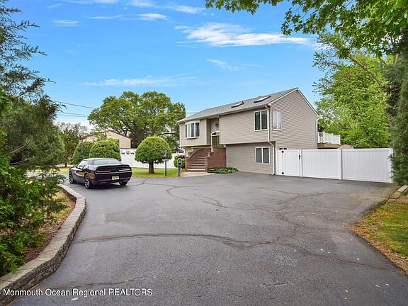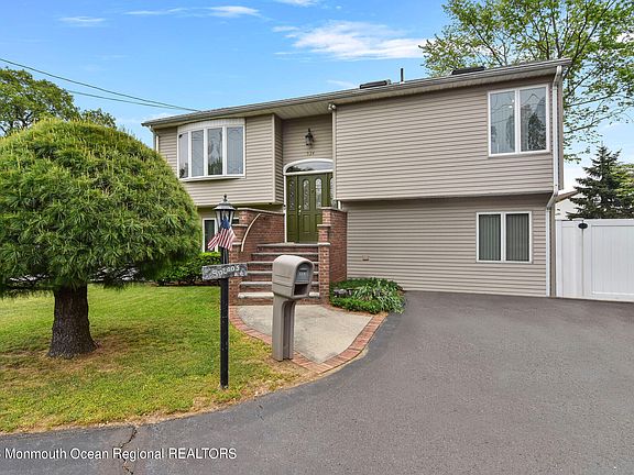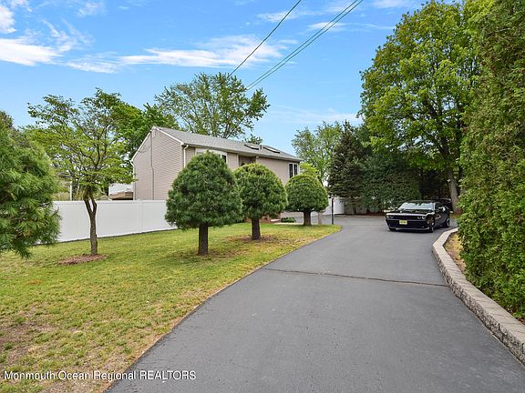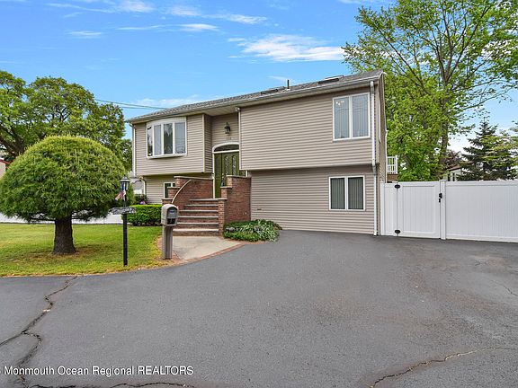 Close to beaches and major roadways, this beautiful bi-level was meticulously redone, providing incredible space for anything one desires! From the spacious living/dining area flowing into a large kitchen with tons of cabinetry and space for prep or just hanging out in the kitchen! Down the hall is a full bath with a massive master bedroom with skylights and space to enjoy some tranquility. Downstairs are two bedrooms, one of which had sliders added to it and is currently a bonus room but can be put back to a bedroom, a half bath, and a fun family room area with one of the coolest bars around! Outside is space galore with a 12 x 20 shed, large patio under the large deck, and saltwater inground pool! Centrally located between Routes 35, 36 and the Garden State Parkway, A home not to miss!