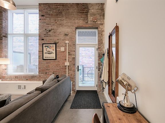 Soaring ceilingsExposed brick wallsOpen floorplanLoft-style bedroomIn-suite laundryPrivate entranceGenerous patio