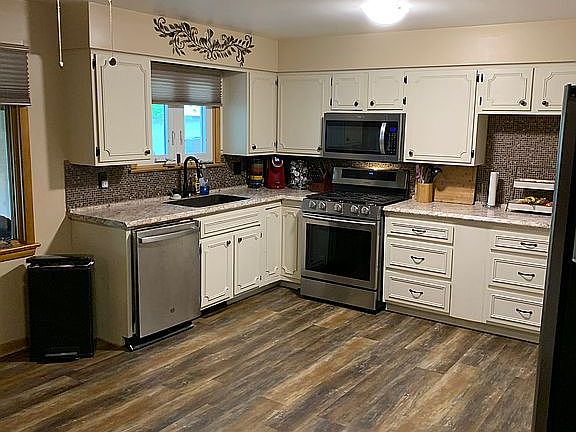Features include a large open kitchen with eating area. Large family room and 2 bedrooms on the first floor, 2 bedrooms on the second. Home also has a 2 car detached brick garage. The main living area has updated LifeProof carpet in 2019 and the bedrooms have hardwood floors. Updated roof in September 2019. New water heater in 2016. Complete downstairs bathroom remodel in 2019. New kitchen counter tops and waterproof flooring in 2020. Large basement with multiple rooms.