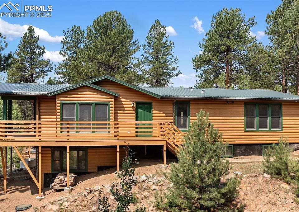 Tucked away at the end of a quiet cul-de-sac in Florissant’s desirable Indian Creek community, this inviting 3-bedroom, 2-bathroom home perfectly captures the spirit of Colorado mountain living. Surrounded by towering trees and peaceful meadow views, it offers the privacy, serenity, and connection to nature you’ve been dreaming of. Step inside to find fresh updates throughout, including brand new flooring and interior and exterior paint. The spacious kitchen flows into a welcoming dining area that opens to a large covered deck—ideal for savoring your morning coffee, soaking in mountain sunsets, or watching deer wander through the trees. The primary suite features a relaxing 5-piece bath, creating a private retreat after a day of exploring nearby trails or fishing at one of the nearby reservoirs. The unfinished walk-out basement with a wood stove and bathroom rough-in is full of potential—ready for your vision of a guest suite, rec room, or workshop. Recent septic inspection and service mean you can move in with confidence and start enjoying life in the mountains right away. Located just 30 minutes from Woodland Park, an hour from Colorado Springs, and minutes from endless outdoor adventure—this is your chance to experience mountain living done right.