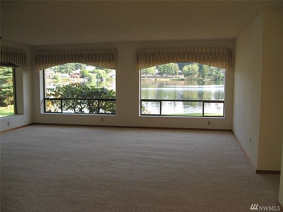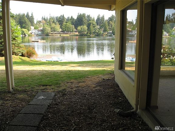 5 bedroom, 2 1/2 bath home on 70 feet of no bank waterfront on serene Mirror Lake! Unique architecture positions main living spaces on second floor to maximize water view. Huge windows throughout provide an unobstructed panorama on both levels. Master w/5 piece bath is on the main, along with another bedroom, living room, and slider to back. Dramatic entry showcases lake. An 870 foot deck means plenty of room for outdoor enjoyment. Secluded lakefront retreat on 2/3 acre w/lush landscape.