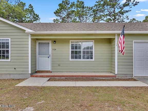 Welcome to 534 Sand Ridge Road in the Timber Ridge community of Hubert — a move-in ready gem that's pristine, polished, and ready to impress! This charming 3-bedroom, 2-bath home offers comfortable, modern living with thoughtful updates throughout. The open-concept layout features vaulted ceilings and luxury vinyl plank flooring for a seamless and stylish flow. The kitchen is the heart of the home, complete with stainless steel appliances, an eat-in dining area, and sliding glass doors that lead to a sunny, private backyard — fully fenced with a privacy fence for your enjoyment. The spacious primary suite includes a refreshed vanity in the attached bathroom, while two additional guest bedrooms share a beautifully updated hall bath. Additional highlights include window blinds throughout, a one-car garage, and an extended driveway for extra parking.