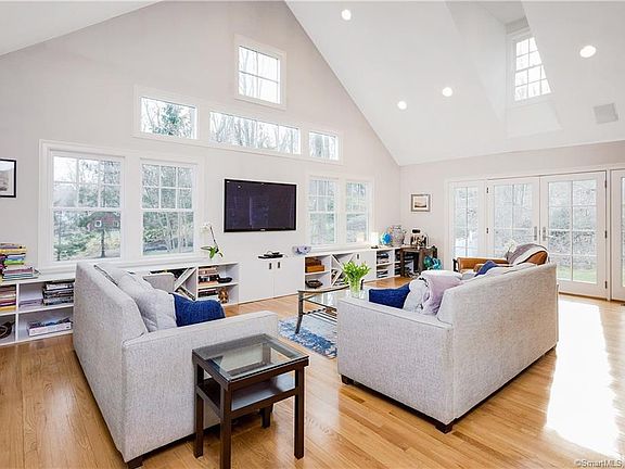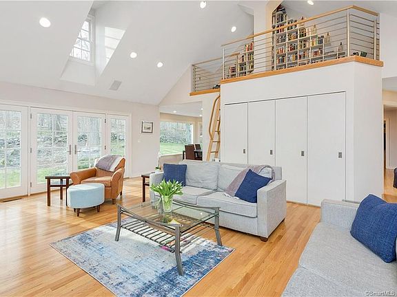 Beautifully renovated with modern architectural details, this sun-filled 5Bd/3Bth colonial is nestled on 2 lovely acres with large play yard and heated POOL. Stunning Family room with cathedral ceilings, skylights and unique loft area is adjacent to large open gourmet chef's kitchen with large picture window breakfast area. Spacious and inviting formal Living room with fireplace, and French doors lead to a large outdoor entertaining terrace. Bedroom/office with built-ins, Formal Dining room, and sitting area complete the main level. Additional highlights include lower level recreation room, newly renovated baths, and much more. This home is truly a gem!