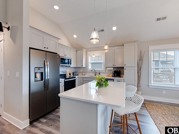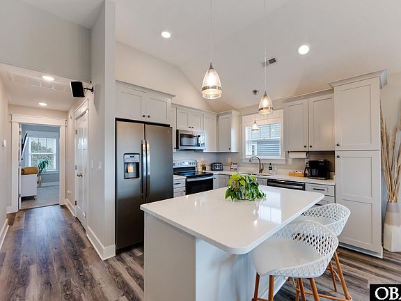 Welcome to 534 W Eden Street, a beautifully maintained coastal retreat located just one block from the sound in the heart of Kill Devil Hills. Built in 2021, this thoughtfully designed home blends modern comfort with timeless Outer Banks charm, offering a bright and open layout perfect for full-time living, a second home, or an investment property. The home features approximately 1,722 square feet of well-appointed living space with three bedrooms and three baths. The lower level includes a comfortable guest suite complete with a wet bar and mini fridge, providing privacy and flexibility for family or visitors. Upstairs, the open-concept living area is warm and inviting, filled with natural light and coastal character. The expansive covered front porch stretches across the façade, providing an ideal setting to enjoy gentle breezes and beautiful soundside sunsets. With virtually no comparable homes currently on the market, this property offers a rare opportunity to take advantage of limited inventory in a highly sought-after neighborhood. The location is exceptional—just steps away from the Bay Drive multi-use path, perfect for morning walks or evening bike rides, and within easy reach of Hayman Street Park, the soundside pier, gazebo, and Dock Street boat ramp. The thoughtful layout, proximity to the sound, and modern coastal finishes make this residence both functional and inviting, while the surrounding neighborhood provides that authentic Outer Banks lifestyle so many desire. 534 W Eden Street is more than just a home—it’s a place where comfort, convenience, and coastal beauty come together. Whether you’re looking for a serene primary residence, a vacation getaway, or an investment opportunity, this property delivers the perfect balance of modern design and coastal living.