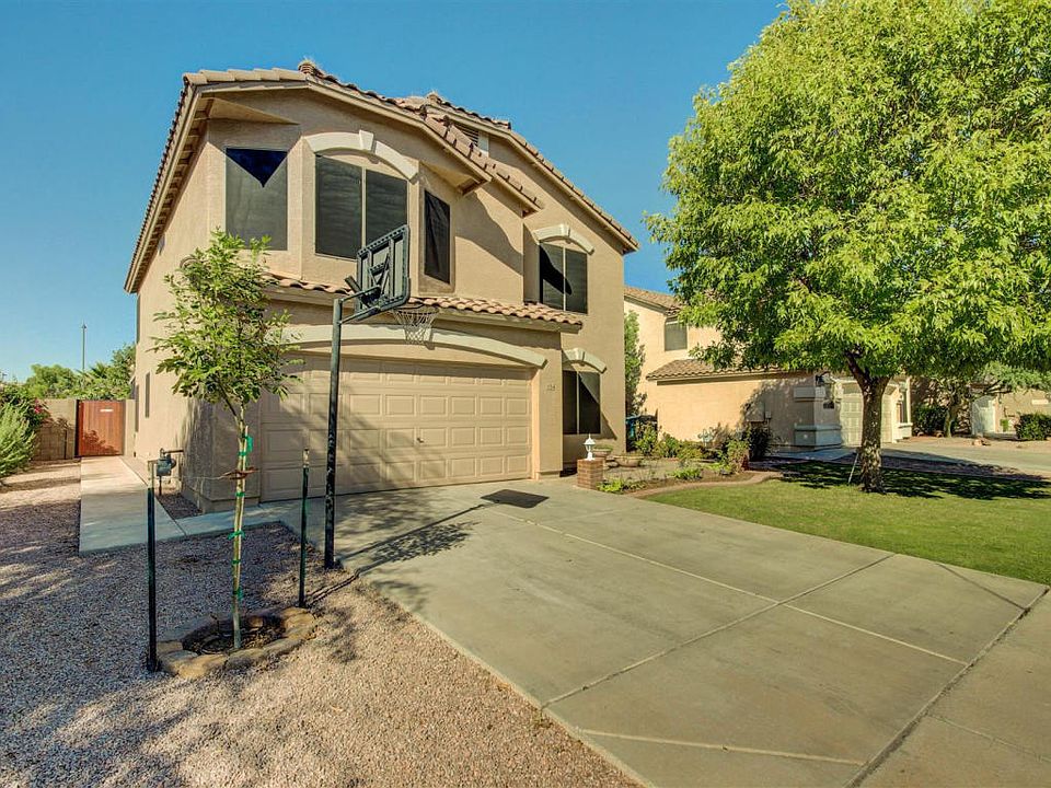 Welcome to the desirable Community of Silverhawke. Gorgeous two level Home with 3/bd/2.5ba plus Den & Loft! Lush green landscape and shade trees. Dramatic soaring ceilings, large tile floor t/o, double door entry to Den, ceiling fans, window blinds, and custom color palette. Arcadia Doors to patio from family room. Center island, and oak cabinetry in kitchen.Fantastic loft with vaulted ceiling and engineer hardwood floors. All bedrooms are large with plenty of closets and storage. Wonderful backyard setting boasts covered patio, decorative fountain, flagstone patio for dining, built-in smoker, BBQ, grassy play area, and all perfect for outdoor entertaining or relaxing. Great gathering place for family and friends. Will NOT last! Call today!