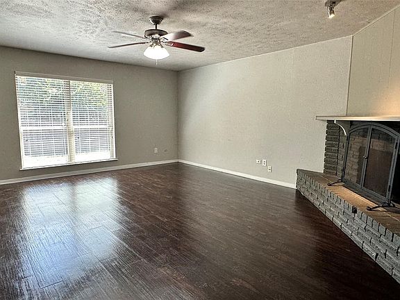 Wood burning fireplaceAll brick homeNeutral paintCeiling fansNatural light from windowsStainless appliancesNaturally lit from windows