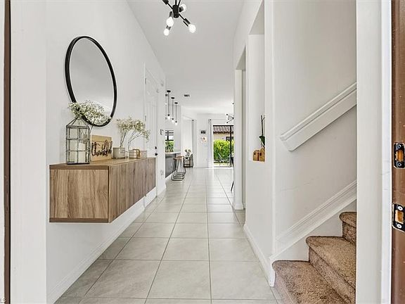Step into this spectacular oversized corner lot home located in Coquina at Maple Ridge. This beautifully upgraded Balboa Model offers two stories of comfortable, modern living with 3 bedrooms, 2.5 bathrooms, and a 1-car garage. Inside, you'll find soaring 10-foot ceilings on the first floor and 9.4-foot ceilings on the second floor, creating an open and spacious atmosphere. The home features elegant 12x12 Dal-Tile flooring in the main living areas, 8-foot interior doors, a Mediterranean-style roof, a keyless garage entry, and an open-concept great room filled with natural light. The kitchen is designed with style and functionality in mind, offering sleek 42-inch upgraded cabinetry, quartz countertops throughout, stainless steel appliances, recessed lighting, and contemporary light fixtures. The expansive owner’s suite includes dual sinks, a seamless glass shower, a walk-in closet, and an additional closet for added convenience. Enjoy stunning side lake views from your private corner lot, offering a sense of space and serenity. Located in Flood Zone X, this home requires no flood insurance, providing peace of mind. Living in Maple Ridge at Ave Maria gives you access to a wealth of amenities, including a vibrant clubhouse, entertainment spaces, walking and jogging trails, tennis, pickleball and bocce courts, a dog park, water park, soccer field, multiple playgrounds, a fitness center, and more. Don’t miss the opportunity to make this upgraded and move-in-ready home yours—schedule your private showing today.