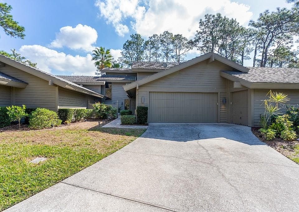Discover your serene sanctuary nestled beneath mature trees in a tranquil subdivision. This beautifully updated home in Saddlebrook immerses you in nature, where you can enjoy the soothing sounds of birds and the picturesque landscape year-round. As you approach, a spacious driveway leads you to an inviting courtyard entrance. Step inside, and you're greeted by a bright and airy living room, flooded with natural light from wall-to-wall glass sliding doors that open to your expansive screened patio perfect for dining and lounging in comfort. The front entrance flows seamlessly into a charming dining area and a modern kitchen featuring granite countertops, stainless steel appliances, and a convenient breakfast bar. A guest bedroom on the first floor offers versatility as an office or den , complemented by a half bath for added convenience. Additionally, part of the garage has been thoughtfully converted into a separate bedroom with its own entrance from the courtyard, easily convertible back to a garage if desired. Ascend the elegant wood staircase to the second floor, where you'll find the luxurious master suite and a spacious second bedroom, both with their own balconies overlooking the beautiful patio. The master bedroom boasts vaulted ceilings, a walk-in closet, and an en-suite bathroom that's been fully upgraded with tile and granite counters, featuring an oversized shower and double vanities. The second bedroom is generous enough for a king-sized bed and has an attached balcony, along with a second full bathroom featuring new cabinets and granite countertops. Convenience continues with a dedicated laundry room equipped with a front-load Samsung washer and dryer. Plus, there's a separate golf cart garage for your convenience. With HOA amenities covering exterior landscaping and roof maintenance, you can fully enjoy the resort- style living that Saddlebrook offers, including a pool, golf course with restaurant, walking trails, tennis courts, and much more. Conveniently located just minutes from I-75, Wiregrass Mall, the new Outlet Mall, and a variety of dining and shopping options.