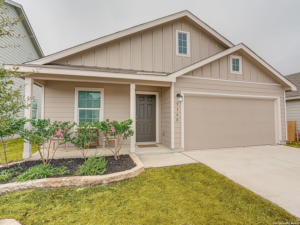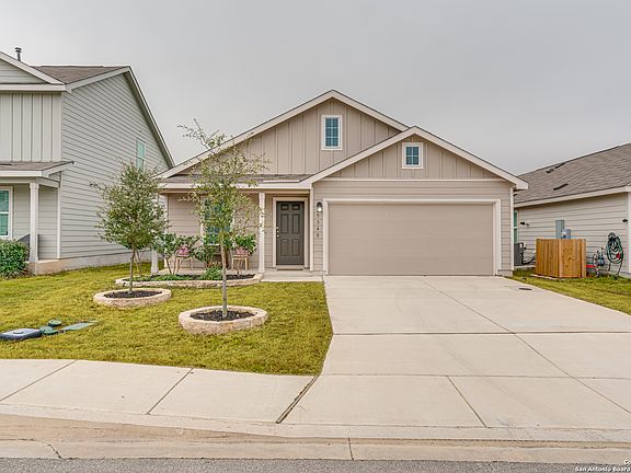 This stunning resort-style residence, where luxury meets comfort in one of the most sought-after communities. This beautifully designed 3 bedroom and 2 bath home offers spacious living areas, modern finishes, large backyard and landscaped front yard. As you enter this charming foyer, it flows into the expansive main living area. The spacious living room flows seamlessly into the kitchen, which is equipped with a large breakfast bar with granite countertops and a stainless steel gas cooking stove. Retreat to the primary suite, featuring a spa-like ensuite and walk-in closet. Outside, has ample space for entertaining and a well-maintained private large backyard. Located in the beautiful Hidden Trails Resort-Style Community. With access to world-class amenities, including a clubhouse, fitness center open 24/7, basketball court, play structures and walking trails and a dog-friendly park. You have quick access to Home Depot, Walmart, HEB, Starbucks and plenty of nearby restaurants. The water softener is being leased.