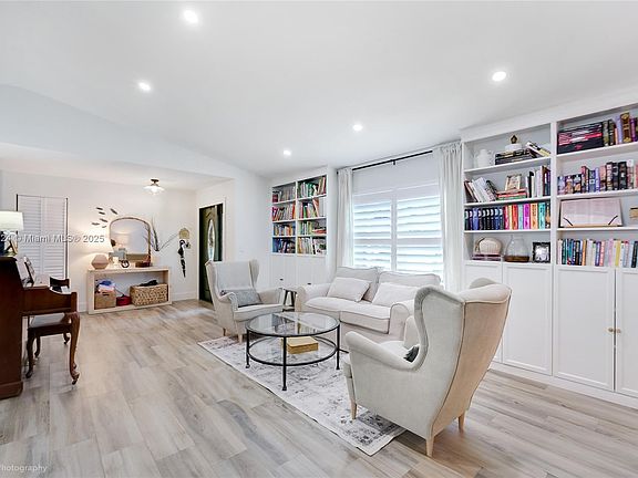 This exceptional home offers style, comfort, and efficiency throughout. Features include tile flooring, quartz countertops in kitchen and bathrooms, and recently refinished kitchen cabinets. The master bathroom has been beautifully renovated, and the reverse osmosis water filtration system adds everyday convenience. Enjoy hurricane impact windows, electric shutters in the 2nd and 3rd bedrooms, foam roof insulation, and Ring security system with cameras and doorbell. Energy-efficient upgrades include a 2024 AC and 2024 water heater. Smart home highlights include a Lutron integrated system for app-controlled lights and fans and a Rain Bird sprinkler system. Outdoor living features a saltwater pool with heater, partial artificial turf, and freshly painted exterior (2024) and interior (2022).