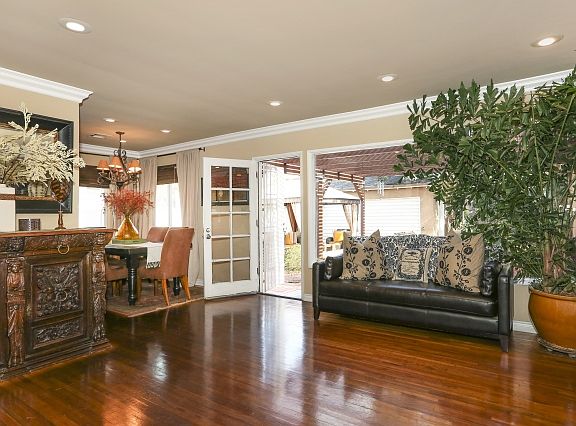 On entering you are greeted with a dramatic view of the patio and yard, which is perfect for entertaining and living the California lifestyle. Large living room with fireplace, hardwood floors and crown molding. The updated kitchen with granite counter tops and splash open to the dining area. Off the front hallway are a bedroom, full bath and den/2nd bedroom. Master suite is private with French doors opening to a beautiful garden. It has a walk in closet, sumptuous full bath with travertine floors, counters; jetted tub and separate shower. Converted garage can be used as a... home office or studio. Rear yard has an avocado and orange tree.. Owner pays for gardener. Tenant responsible for all utilities. Must have a minimum credit score of 700.