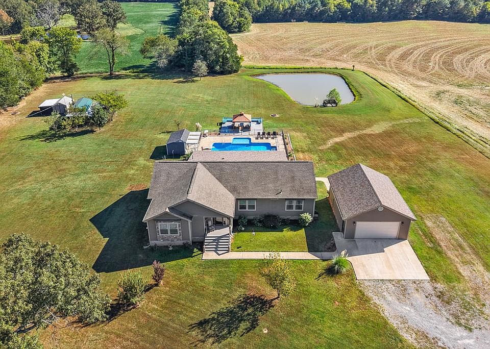 Discover this private retreat in Buchanan, just minutes from beautiful Kentucky Lake. Set on a spacious 4 acre tract of land, this custom modular home offers comfort, privacy and all the amenities for resort-style living. The main home features an open-concept design, generous living spaces perfect for entertaining. Step outside to the large covered porch and step down to enjoy a sparking inground pool with a surrounding patio, pool house for snacks and gazebo with surrounding deck for the ultimate entertaining space overlooking the stocked pond. Have guests? There is a one bedroom guest house with it's own septic and shared well for overnight visitors, hobbies, or extended stays. With acreage surrounding the property, you will enjoy the peace and seclusion of country living while still being close the the lake, marina's and local conveniences. Whether you're looking for a full-time residence, vacation home, or investment property, this home is ready to offer the perfect lifestyle.