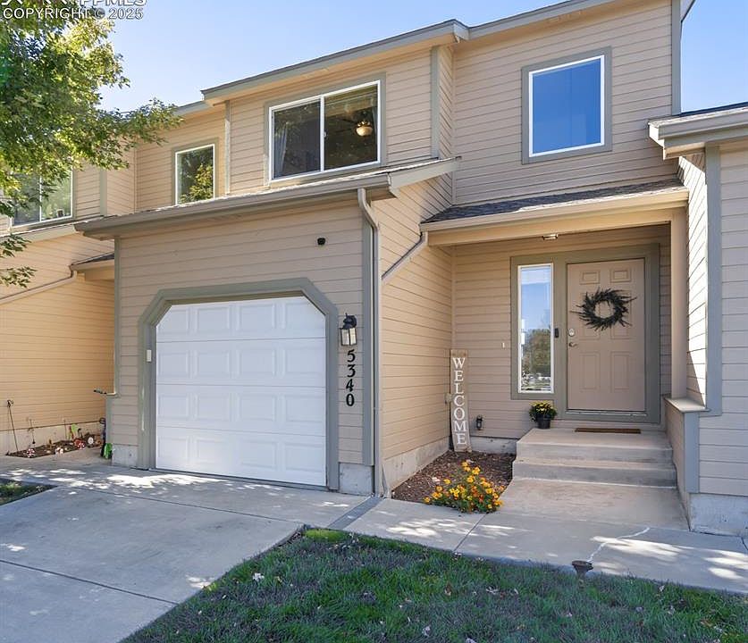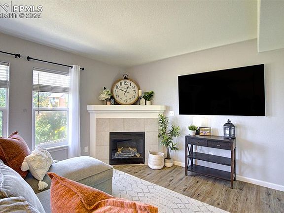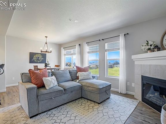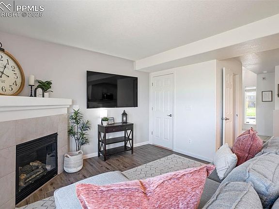 Welcome Home! This beautiful townhome featured new carpet, vinyl flooring, and paint! As you enter the home, you will notice the vaulted ceilings create a spacious and inviting entry to your home. The main level boasts a beautiful great room with a gas fireplace to enjoy, and the expansive Pikes Peak Mountain views are sure to please! Upstairs you will find a spacious primary suite with a private bath, walk in closet, and vaulted ceilings. There is an additional bedroom, full bath, and laundry to complete the upper level. The walkout basement leads to your private patio- perfect for grilling! There is a 1 car attached garage and ample parking for your guests!