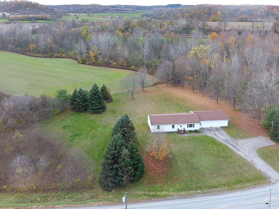 Privacy Awaits! Sprawling 3 Bedroom 2 FULL BATH Ranch on over an acre surround by woods. New cherry kitchen with CORIAN COUNTERTOPS & 2 Large Pantry's all new appliances included. BRAND NEW Oak floors. New Sliding door leads to deck and private rear yard. Formal Dining room with oak floors and bay window. Huge living room with new plush carpet. Master Suite w/ Separate Bath Open railed staircase leads to expansive walkout basement, Room for all your toys in the 3+ Car garage Brand new High Efficiency Furnace.