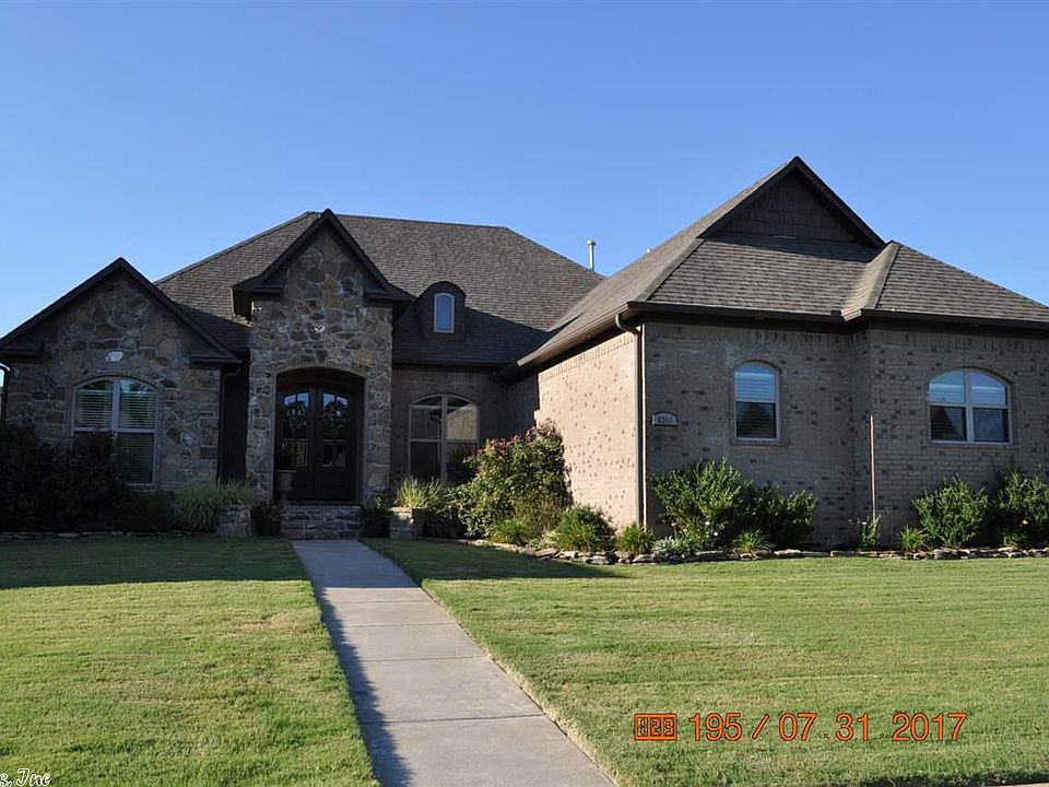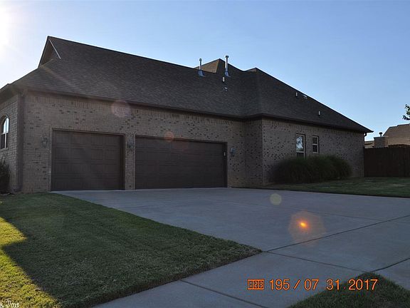 Perfect home in nice neighborhood offers 4 bedrooms, 3 baths, large corner lot with 3 car garage! Beautiful entry way leads into large living room with 12' foot ceilings, fireplace, wood flooring. Kitchen offers lots of cabinets, granite counter tops, breakfast bar & eating area. Formal dining room, too! Master suite is awesome! Bathroom has his/hers vanities, huge closet, jetted tub & pretty shower. All 3 other bedrooms are nice size with good closet space. Covered patio overlooks fenced yard! Pretty!
