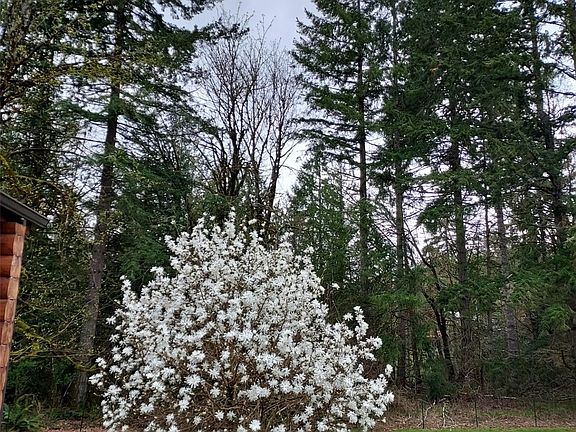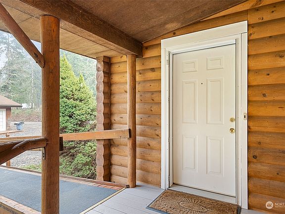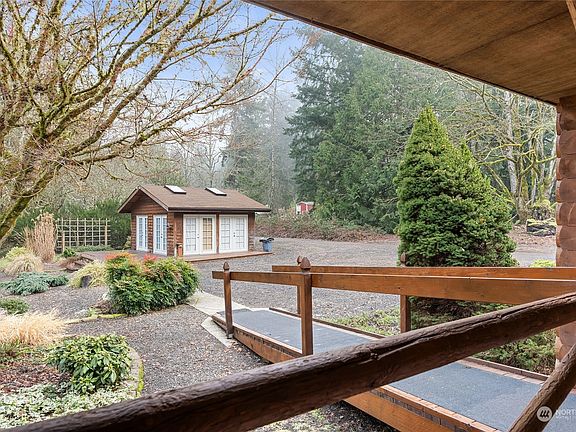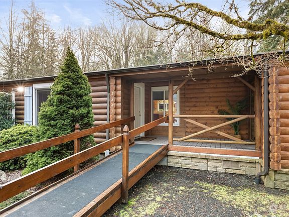 Nearly 5 wooded, private level acres afford privacy and the sounds of nature. The homesite is cleared and features amazing landscaping a Master Gardener will envy, and an expansive level area for gardening, games or relaxation. There's an oversized 2 car garage, a wrap-around covered and screened deck including a 'Catio', a 300 sf detached studio/shop or office (perhaps an ADU in the future?). Fabulously located one level log home began life as a manufactured home and has undergone a transformation and addition. The two-bedroom home includes a spacious family room and office space. So very private, yet so close to amenities; this is an exceptional find! You'll never want to leave home! Allow yourself time to explore - there's so much here!